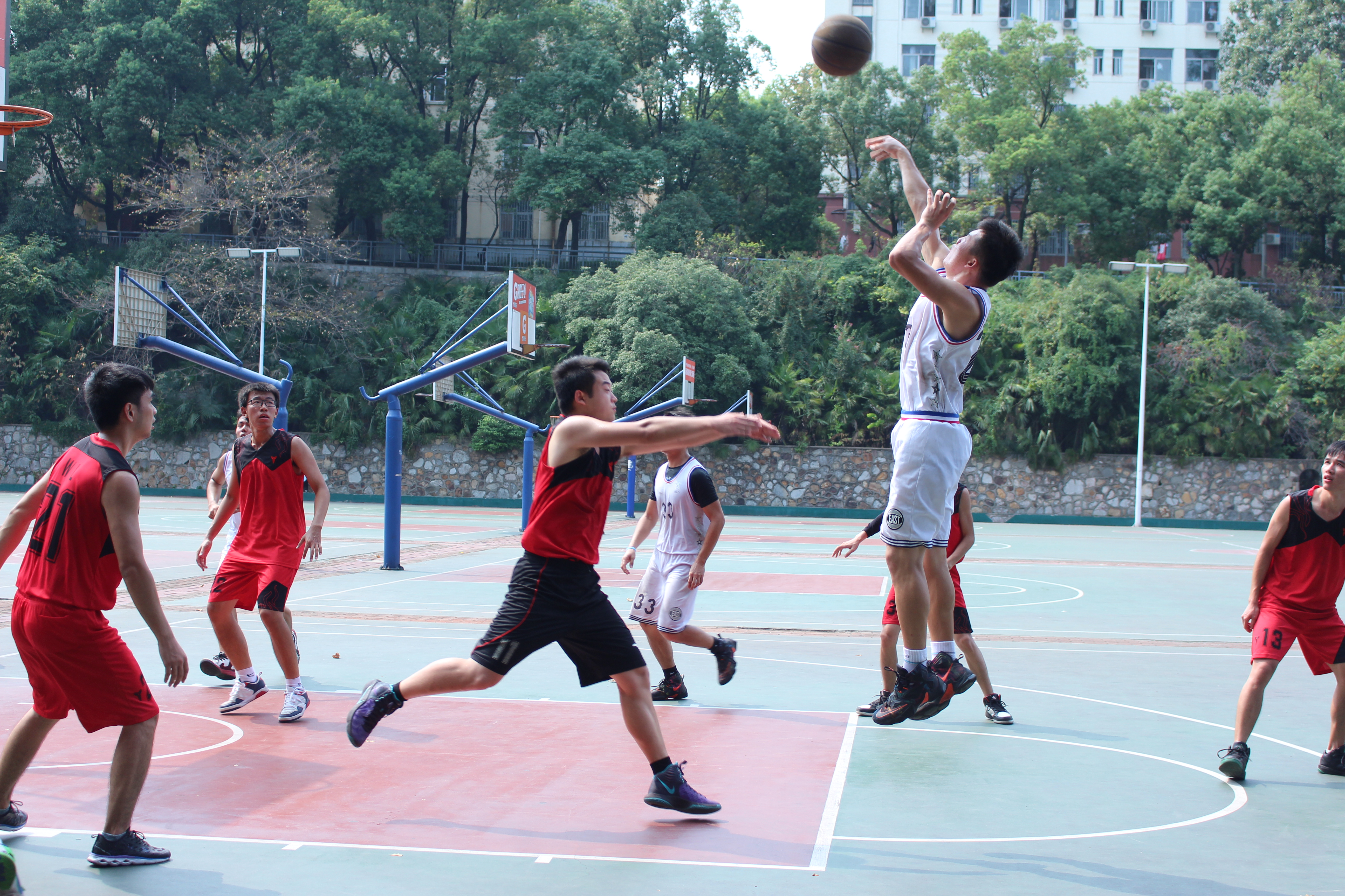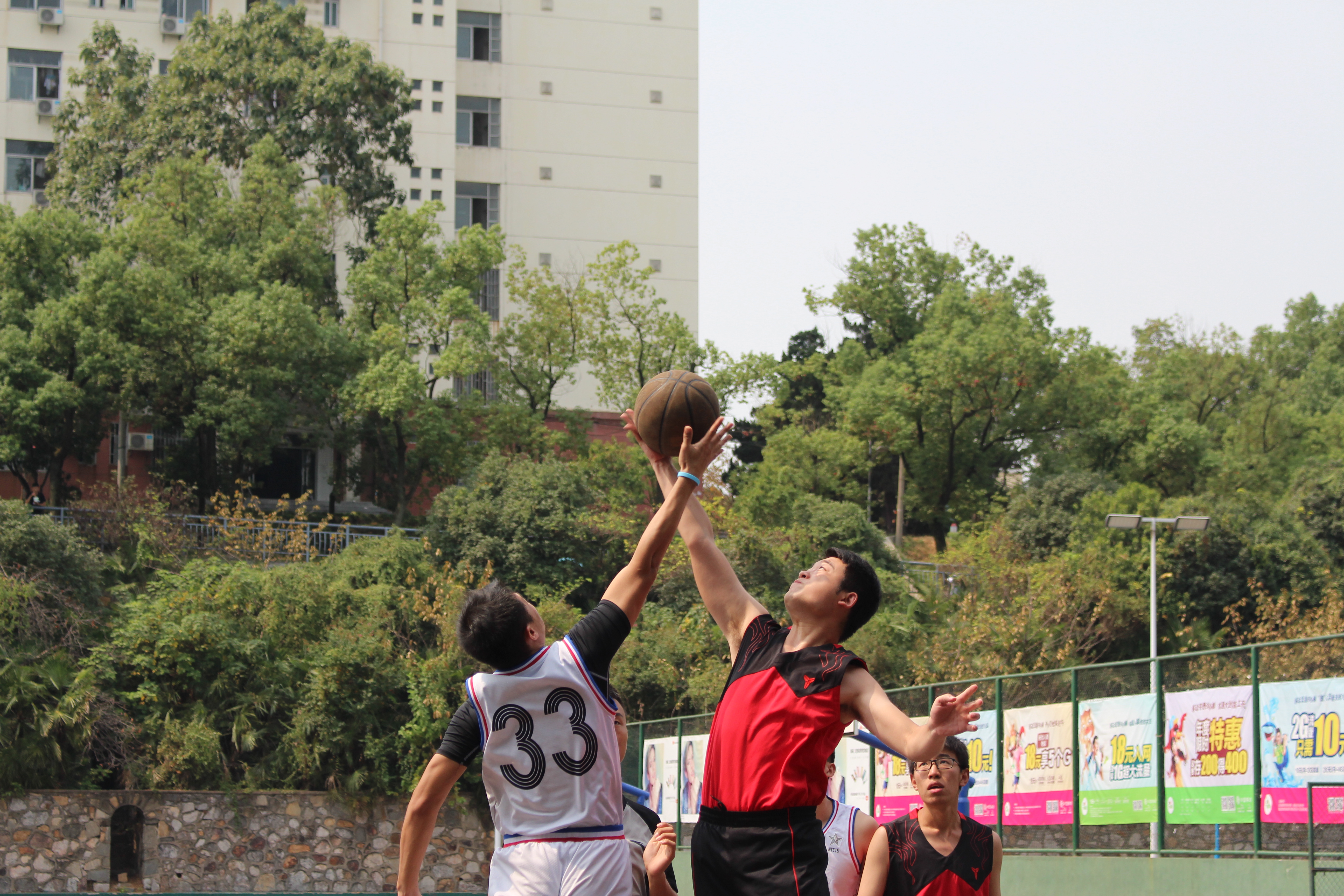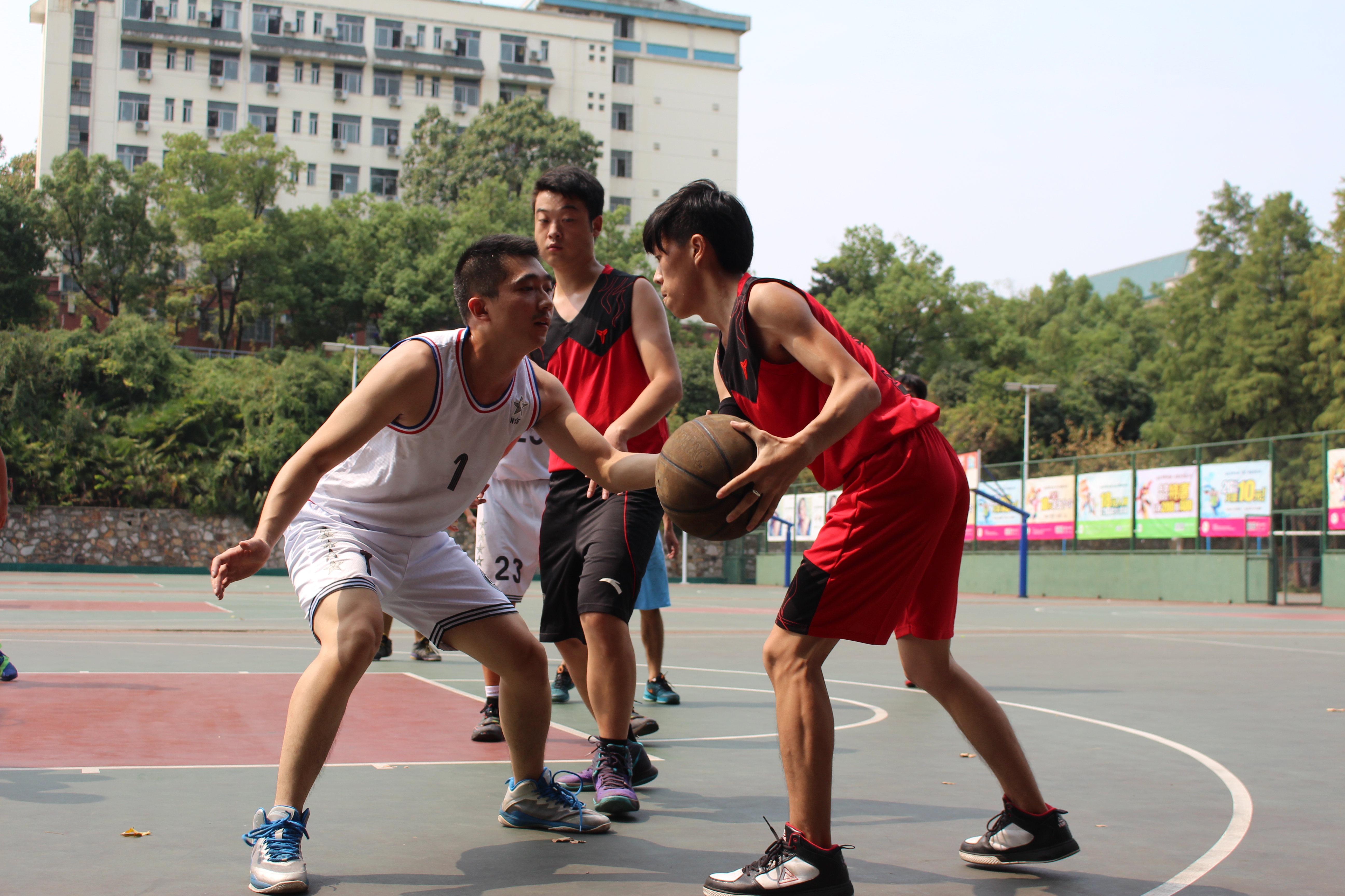 决赛在中午上演,娇阳如火般炙烤着大地,但这丝毫没有影响球员和观众的热情。在球场上,队员们相互配合,组织进攻,奉献给观众一个又一个精彩进球,“注意防守!”、“传球!”场上声嘶力竭的呐喊传来,队员们投球的精准、传球的默契让观众连连称赞。“好球!”、“加油!”场下的后援呼喊着为队员们助威。男队中场休息时,女生以定点投篮形式展开比赛,比赛场面虽没有男队比赛时那么激烈,但同样扣人心弦,精彩万分。比赛过程中,裁判组秉公执法,严肃、认真,尽自己最大的努力判决好每一个球,保障了比赛的公证性、连续性和观赏性。为了保证比赛的顺利进行,各班队员和同学也顾大局,识大体,服从裁判,赛出风格,赛出水平,充分展现太阳成官网研究生良好的精神面貌和全面发展的优秀素质。